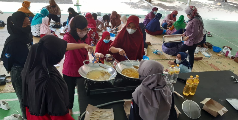 Info Pleret - Ahad (24/10) bertempat dihalaman masjid Riyadhus Shalihin Padukuhan Gunungan Kalurahan Pleret, telah dilaksanakan pelatihan pengolahan stik tahu kepada warga yang masuk dalam kelompok usia sangat produktif (25-40 tahun) yaitu masih mampu untuk melakukan banyak hal yang dapat meningkatkan kesejahteraan keluarga.