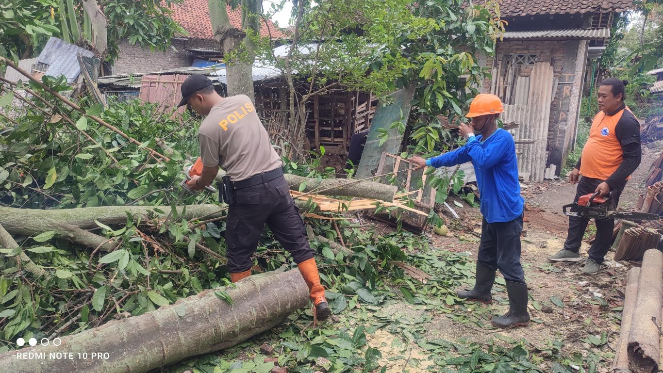 Adapun di wilayah Srumbung RT 04 terdapat rumah warga yang tertimpa pohon jati sehingga perlu segera dilakukan evakuasi. Dengan sigap dan cekatan para relawan berhasil mengevakuasi rumah yang tertimpa pohon jati tersebut. Meski tidak ada korban jiwa, namun kondisi rumah mengalami kerusakan yang cukup parah.#R-na